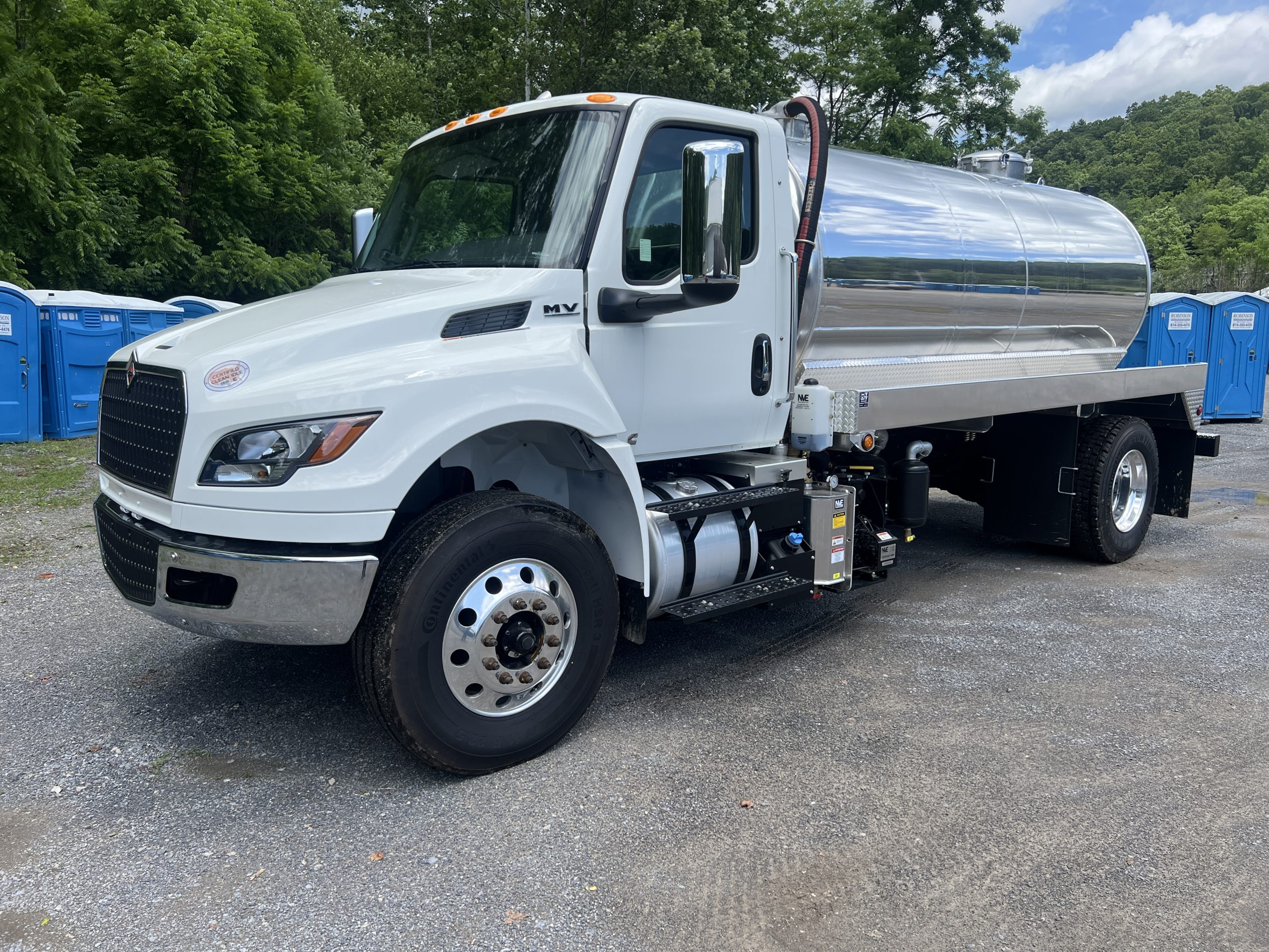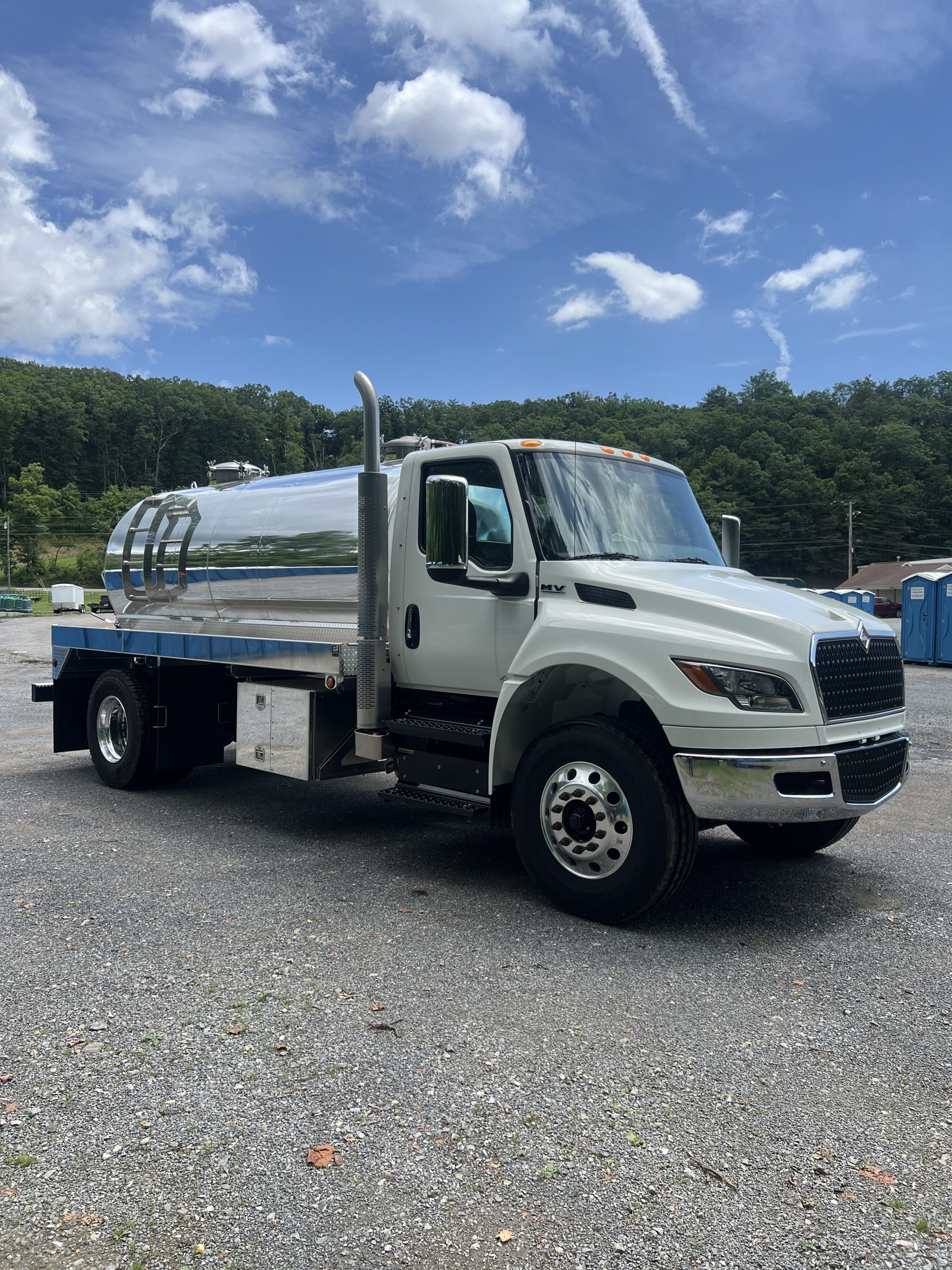 **IN STOCK** 2025 International MV607 upfitted with a 2,500-gallon, single compartment, aluminum vacuum tank.