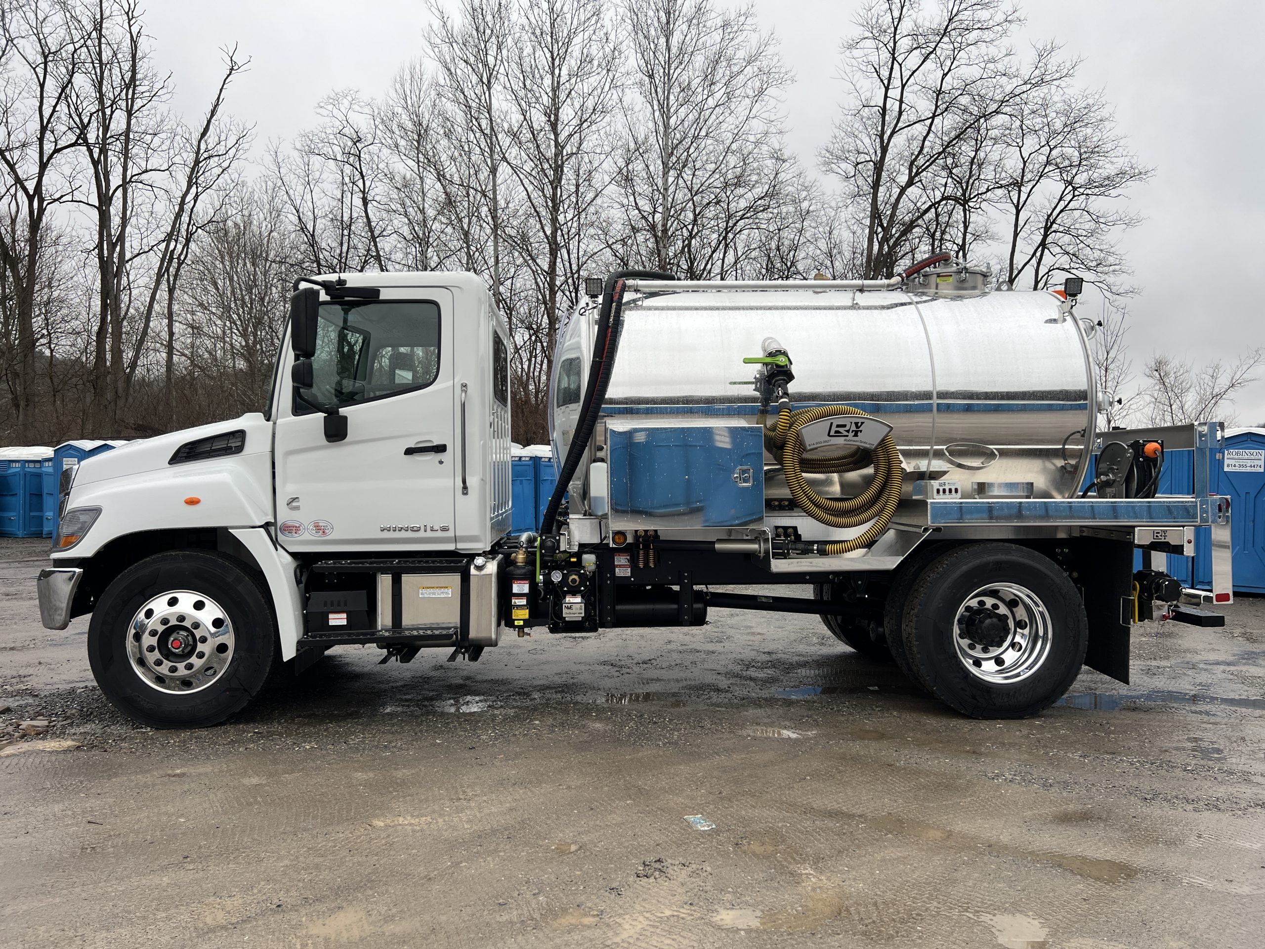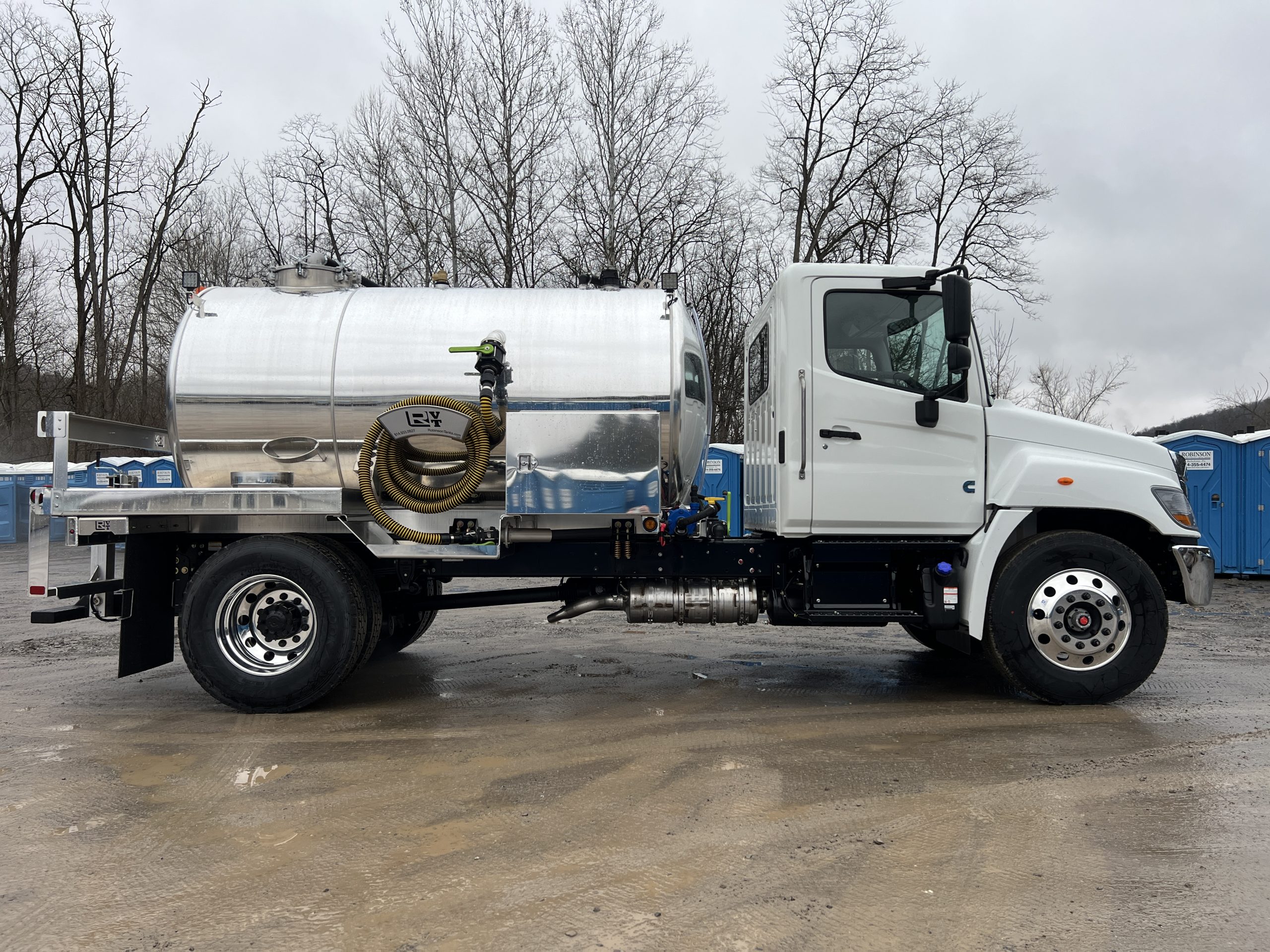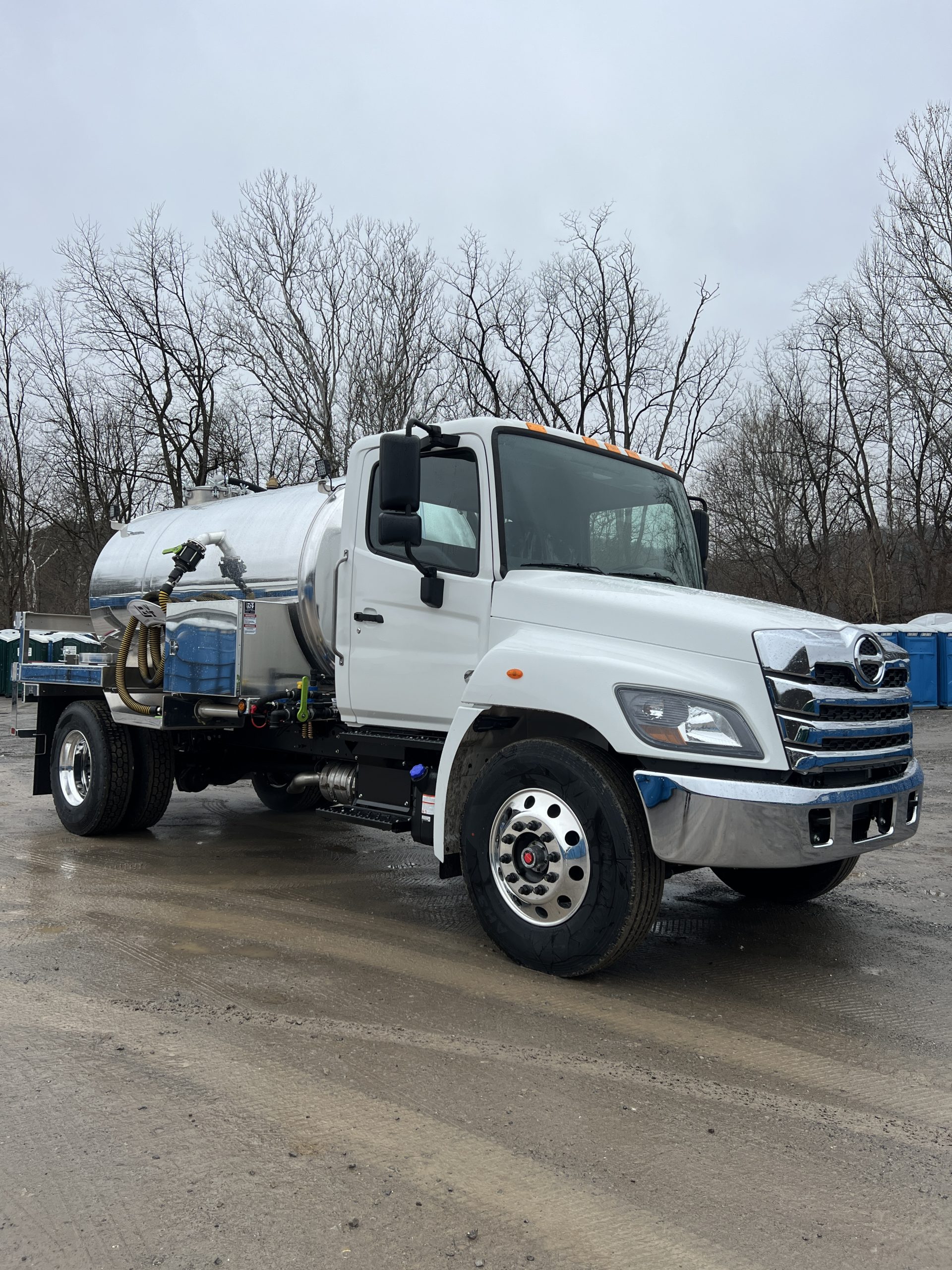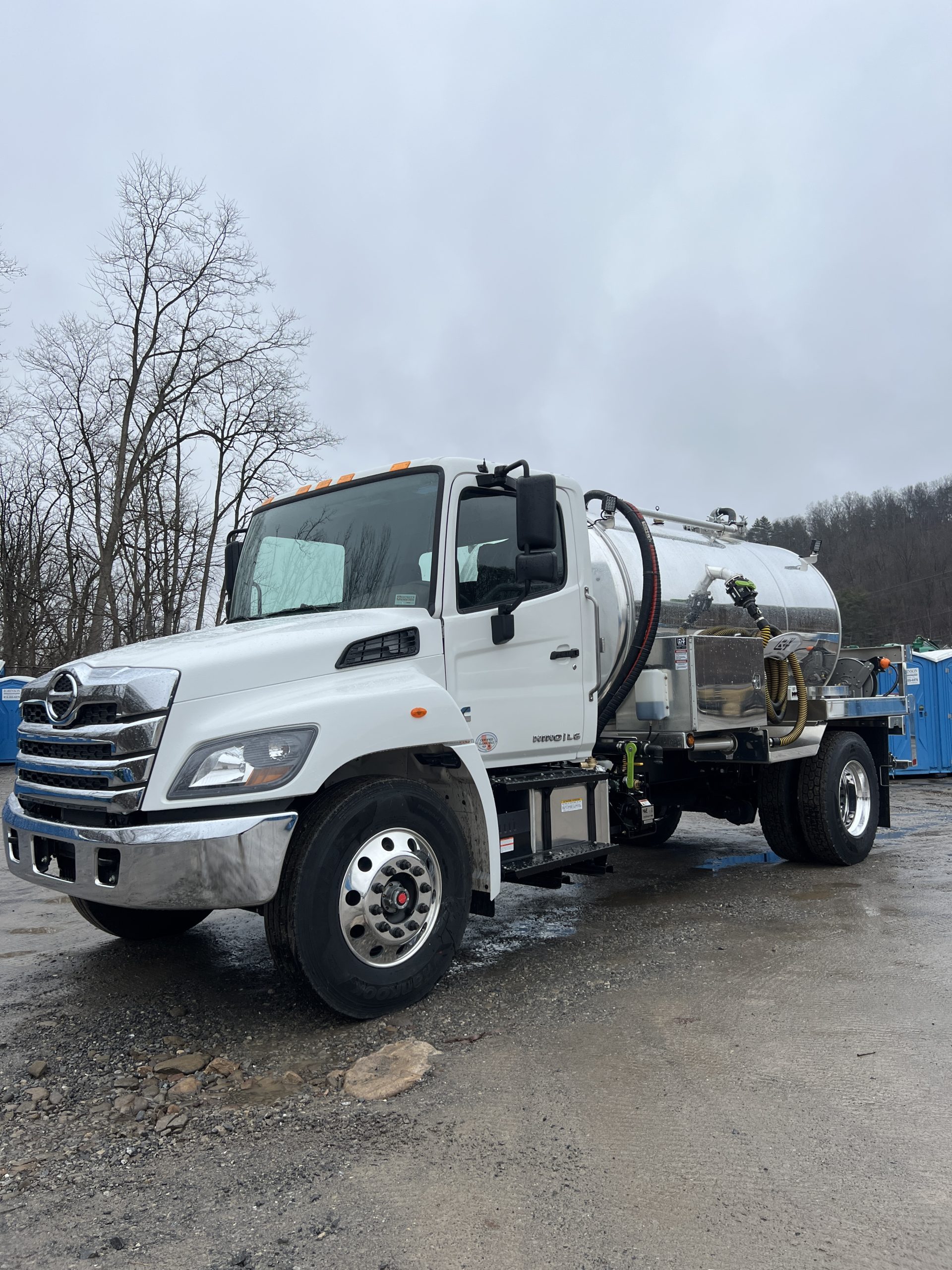 **IN STOCK** 2026 Hino L6 with a 2,000-gallon, aluminum, portable restroom tank.